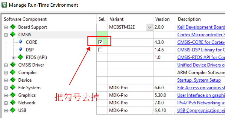 找到里面的CMSIS选项,打开,看到里面的[CORE]后面有个√,去掉这个就可以了.