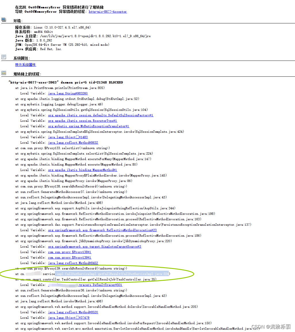 其中第一行中 nid=0x11ce,此处就是我们上面16进制线程号:11ce。所以此条堆栈对应的代码行数,即为耗费CPU比较高的线程对应的代码(上面堆栈仅为示例)。