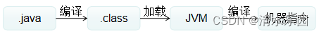 首先 Java代码会被编译成字节码 .class文件,在运行时会被加载到 JVM中,JVM会将 .class转换为具体的 CPU执行指令,CPU加载这些指令逐条执行。