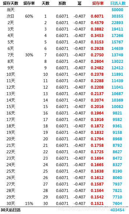 通过以上方式即可计算得到30天后,它的日活数会达到403454人。