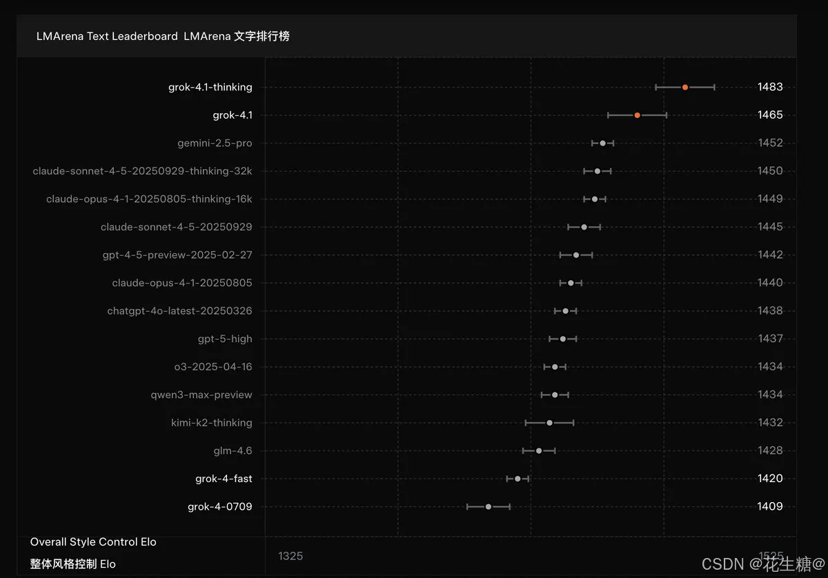 2025年11月,xAI 团队正式推出 Grok 系列最新版本——Grok 4.1。作为 Grok 4 的重要迭代,Grok 4.1 在保持原有大规模强化学习(RLHF)框架的基础上,引入创新的“前沿智能推理模型作奖励模型”机制,显著提升模型在事实一致性、上下文理解与情感连贯性方面的表现。据 LMArena 文本竞技场最新数据显示,Grok 4.1 的 Thinking 版本以 1483 Elo 分高居榜首;而在专注于情感与社交智能评估的 EQ-Bench3 基准中,更是以 1586 Elo 分拔得头筹,展现出其在“走心”交互上的领先优势。