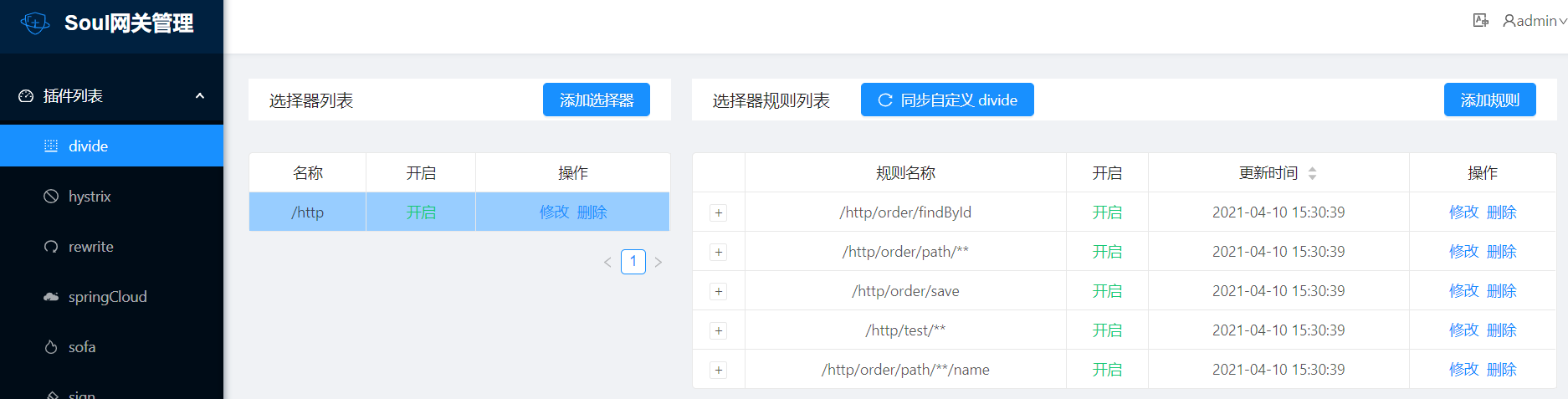 admin是整个网关的控制面板,掌管所有的流量,规则的匹配。