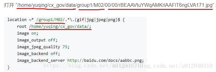上面配置了3个store_path(三个项目),分别监听81端口的/group1/M00/、/group1/M01/、/group1/M02/,并判断是否是图片后缀结尾,如果是图片后缀结尾使用缩略图模块进行图片处理,不是图片文件再匹配使用ngx_fastdfs_module模块处理文件