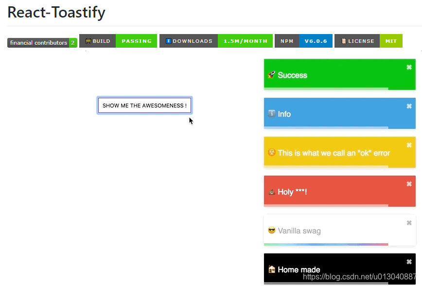 博客提供了react-toastify项目在GitHub上的链接,该项目可能与前端开发相关,能为开发者提供相应的代码资源和参考。