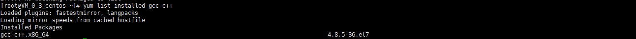 安装好之后,可以查看gcc环境,输入: yum list installed gcc,可以看到我的版本是 4.8.5的。