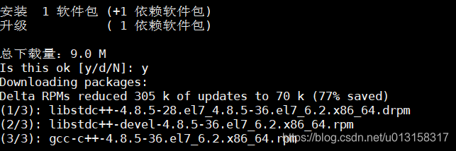 输入命令:yum install gcc-c++,出现选择y/n 的时候直接y。