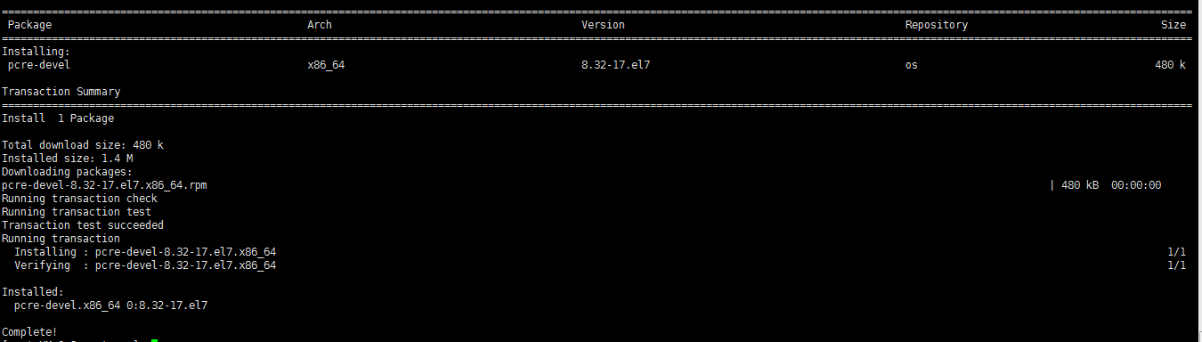 # rpm -ivh pcre-devel-8.42-17.el7.i686.rpm