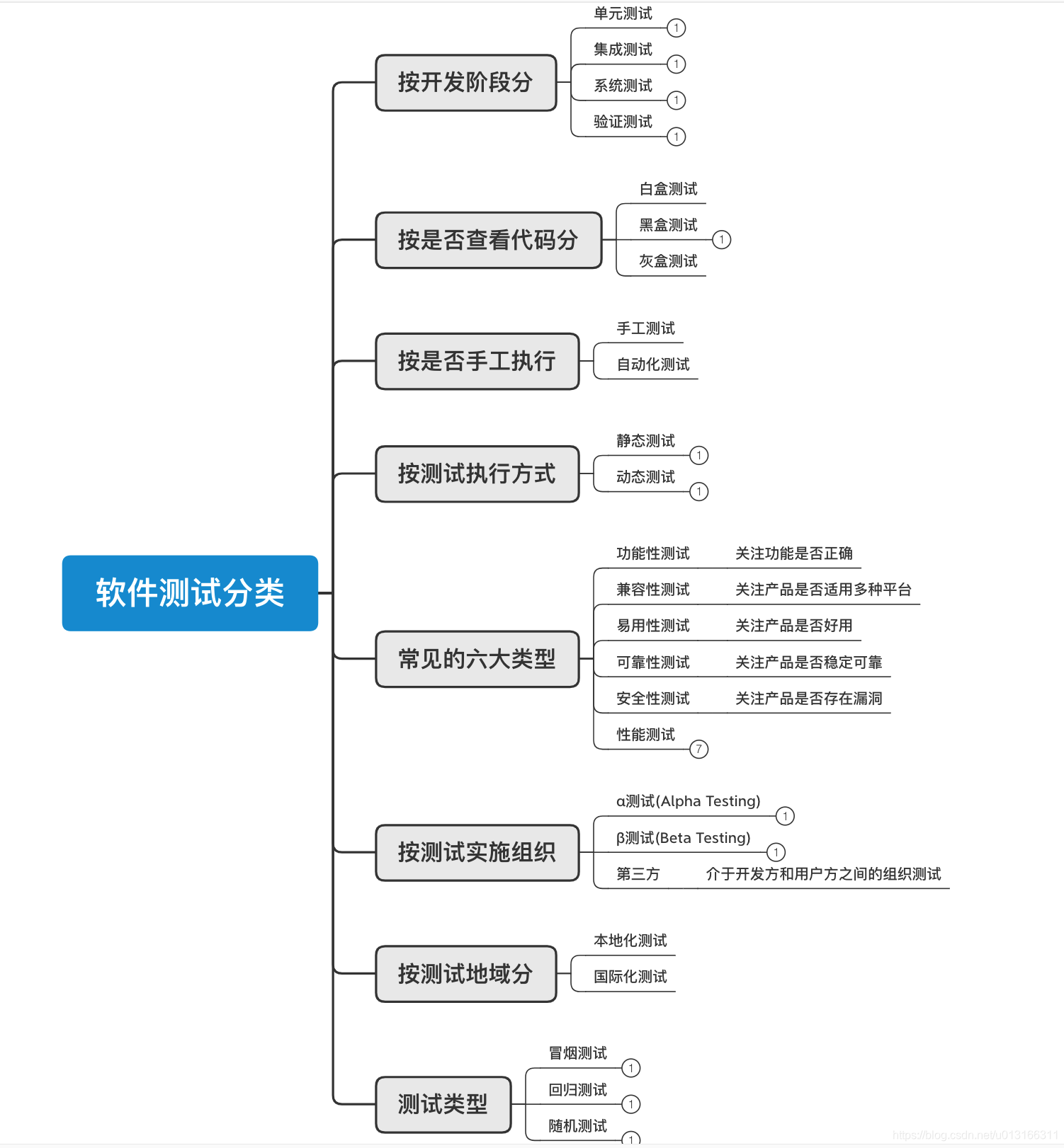 博客指出软件测试按所做工作不同有多种分类,将介绍一些常见分类情况。