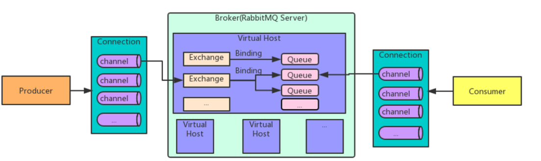 - 消费者(Consumer):消息的接收者,从队列中获取消息并进行处理。