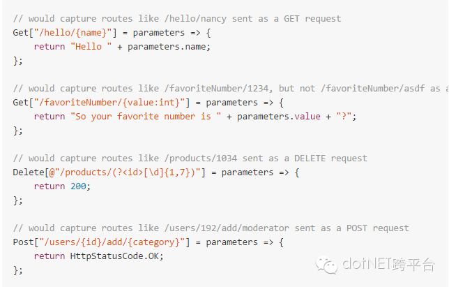 这个时候,所有访问nancy目录的请求,就都会被Nancy处理了,接下来,我们就可以这样写代码了,例如: