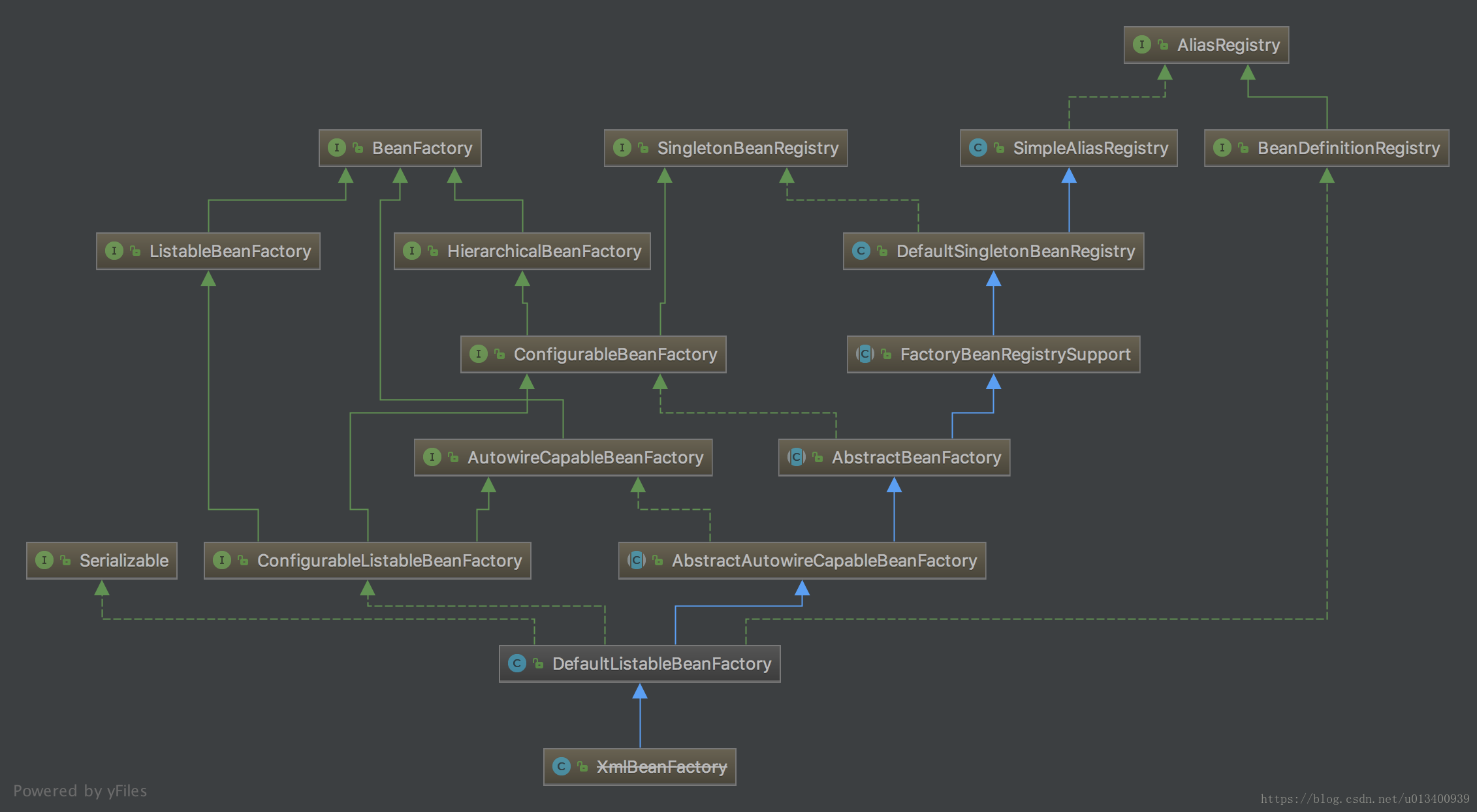 - BeanFactory作为一个接口类,没有提供具体的实现,Spring中,DefaultListableBeanFactory,作为一个默认的功能完整的IOC容器使用。