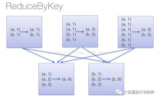 这个操作在Map-Reduce中也有,这里举个例子:rdd.groupByKey().mapValue(_.sum)比rdd.reduceByKey的效率低,原因如下两幅图所示: