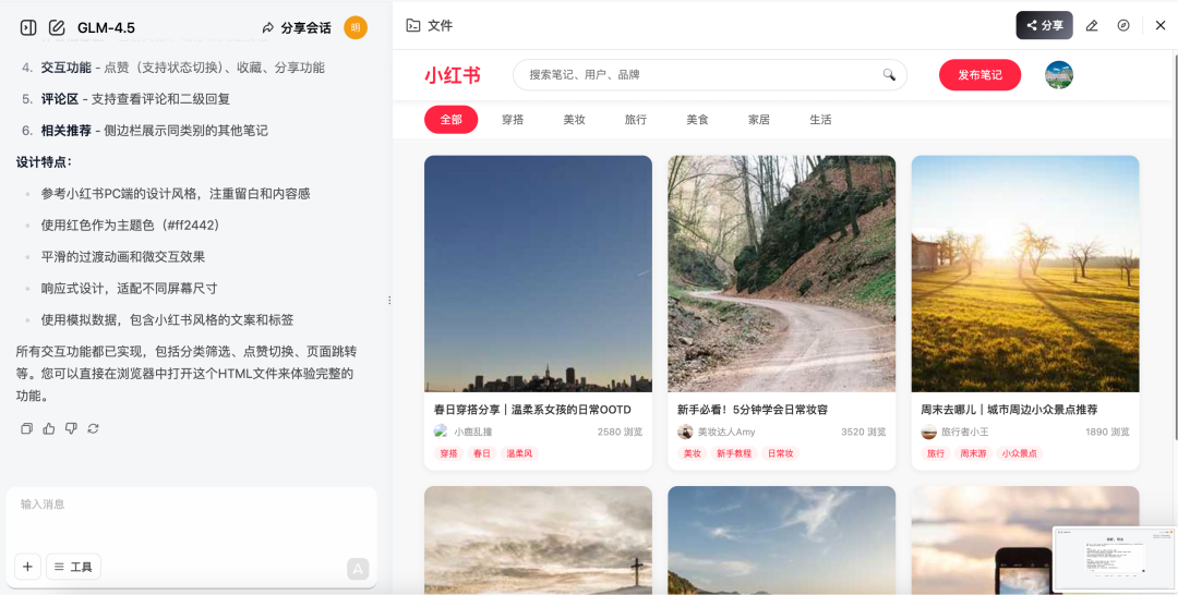 以YouTube为起点,不难想象GLM-4.5在国内内容生态中的适配潜力。实际操作中,只需几行中文提示,就能构建各类典型应用网站,交互逻辑、UI层级、前后端功能一应俱全,尤其适合自媒体人、产品经理、创业者验证想法。