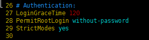 调整PermitRootLogin参数值为yes,如下图: