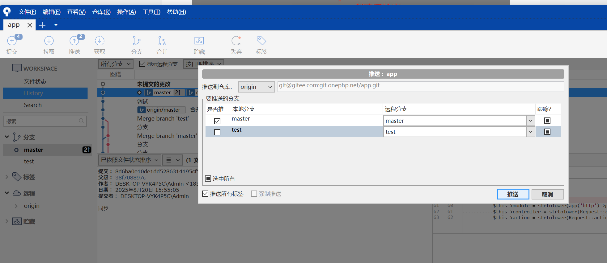 2、创建分支后,可以在新的分支同步版本,更新提交