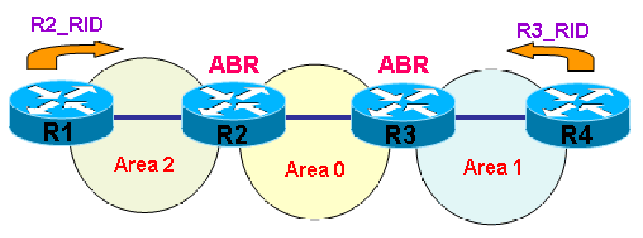在 OSPF 区域内,ABR 在将一个区域的 LSA 转发至另一个区域时,产生该 LSA 的 Router-ID 就不再是原来的 Router-ID,会被修改为 ABR 的 Router-ID。