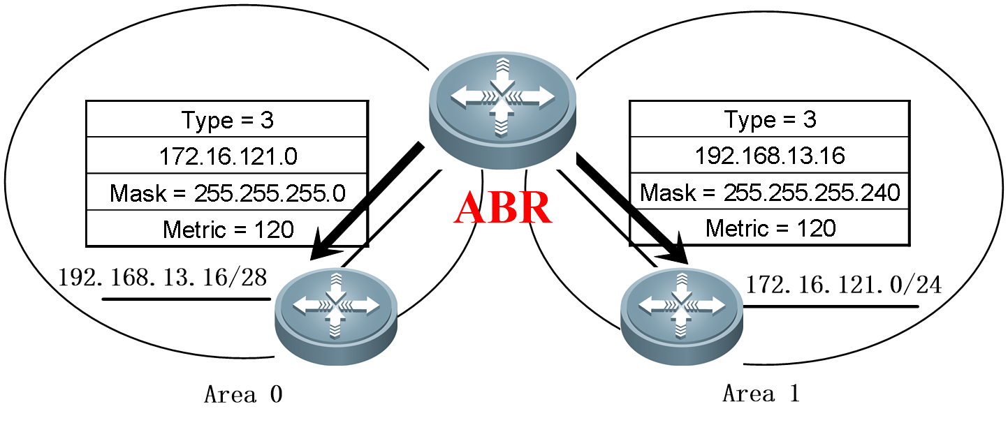 类型 3 的 LSA 就是将一个区域的 LSA 发向另一个区域时的汇总和简化,ABR 其实就是将 LSA 1 汇总和简化,变成 LSA 3 后再发到另一个区域的,如果是详细完整的 LSA 1,是绝不允许的,LSA 3 是 LSA 1 的缩略版。