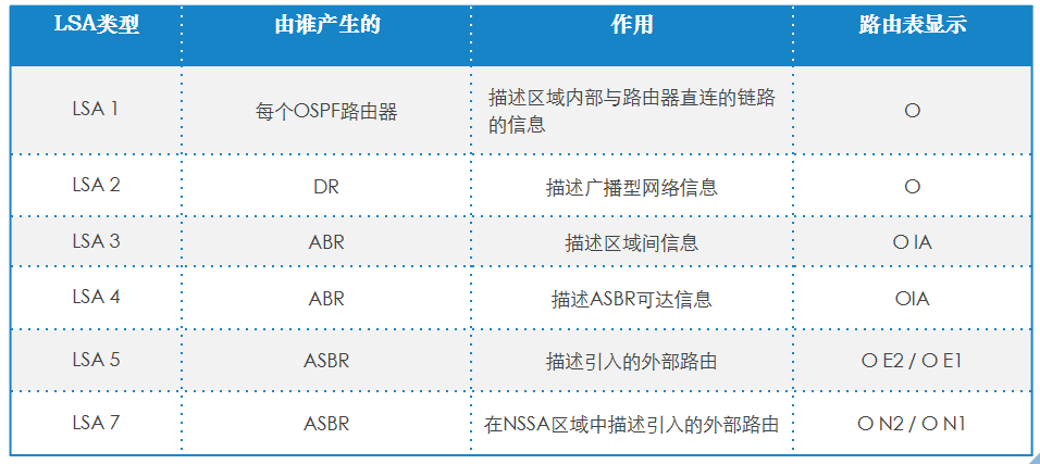 OSPF 由于有多种区域类型,多种网络类型,多种链路类型,多种路由器身份,所以 LSA(Link-State Advertisements)也是多样的。OSPF 中共有 11 类 LSA,而在 CCIE 的要求中,只需要理解 1、2、3、4、5、7 共 6 类即可,这些 LSA 会因为区域类型,网络类型,链路类型,路由器身份的不同而不同。
