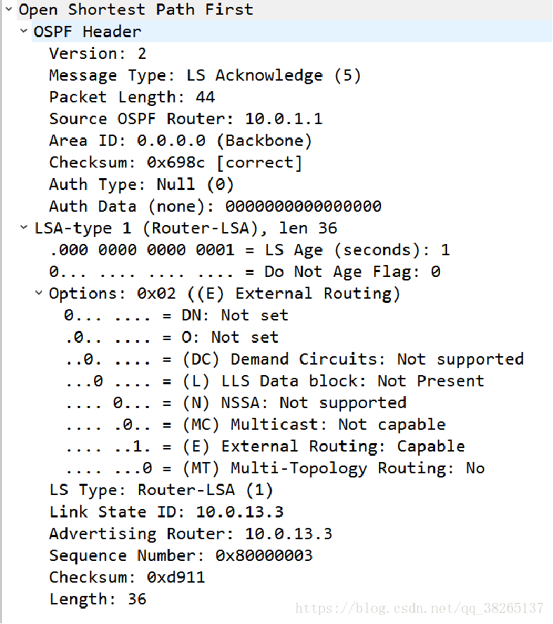 LS checksum:除了 LS age 字段外,关于 LSA 的全部信息的校验和。