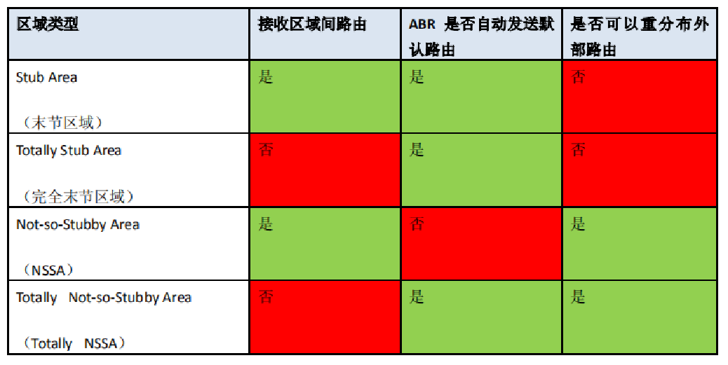 根据末节区域过滤掉区域外的不同路由,可将末节区域分为如下四类:
