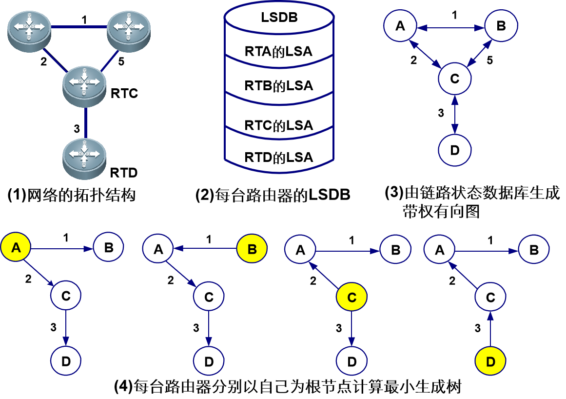 (1)LSA1 ——Router LSA: 本路由器所有接口的链路状态汇总