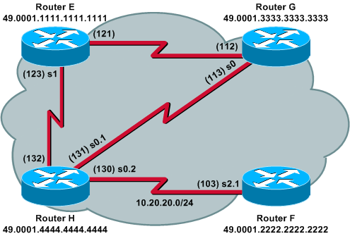 Router_H# show clns neighbors System Id Interface SNPA State Holdtime Type Protocol Router_E Se0.1 DLCI 132 Up 28 L1 IS-IS Router_F Se0.2 DLCI 130 Up 21 L1 IS-IS Router_G Se0.1 DLCI 131 Up 28 L1 IS-IS