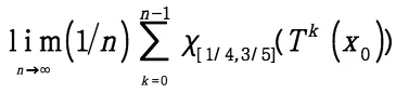 lim n → ∞ 1 n ∑ k = 0 n − 1 χ A ( T k ( x 0 ) ) \lim_{n \to \infty} \frac{1}{n} \sum_{k = 0}^{n - 1} \chi_A(T^k(x_0)) n→∞limn1k=0∑n−1χA(Tk(x0))