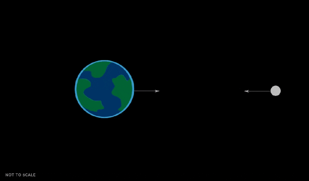 你可能知道,月球的引力是地球潮汐的主要成因。这种引力会导致地球海洋出现两个凸起,也就是涨潮:一个在海洋最靠近月球的一侧,另一个在相反一侧。月球对面的涨潮区域,是因为月球将地球(而非海洋)向自身方向拉扯形成的。两个涨潮凸起之间的区域则是退潮。