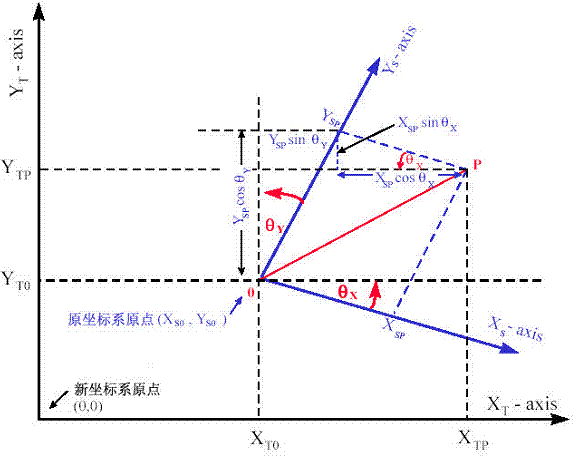 XTP=XT0+YSP⋅sinθY+XSP⋅cosθXYTP=YT0+YSP⋅cosθY−XSP⋅sinθX