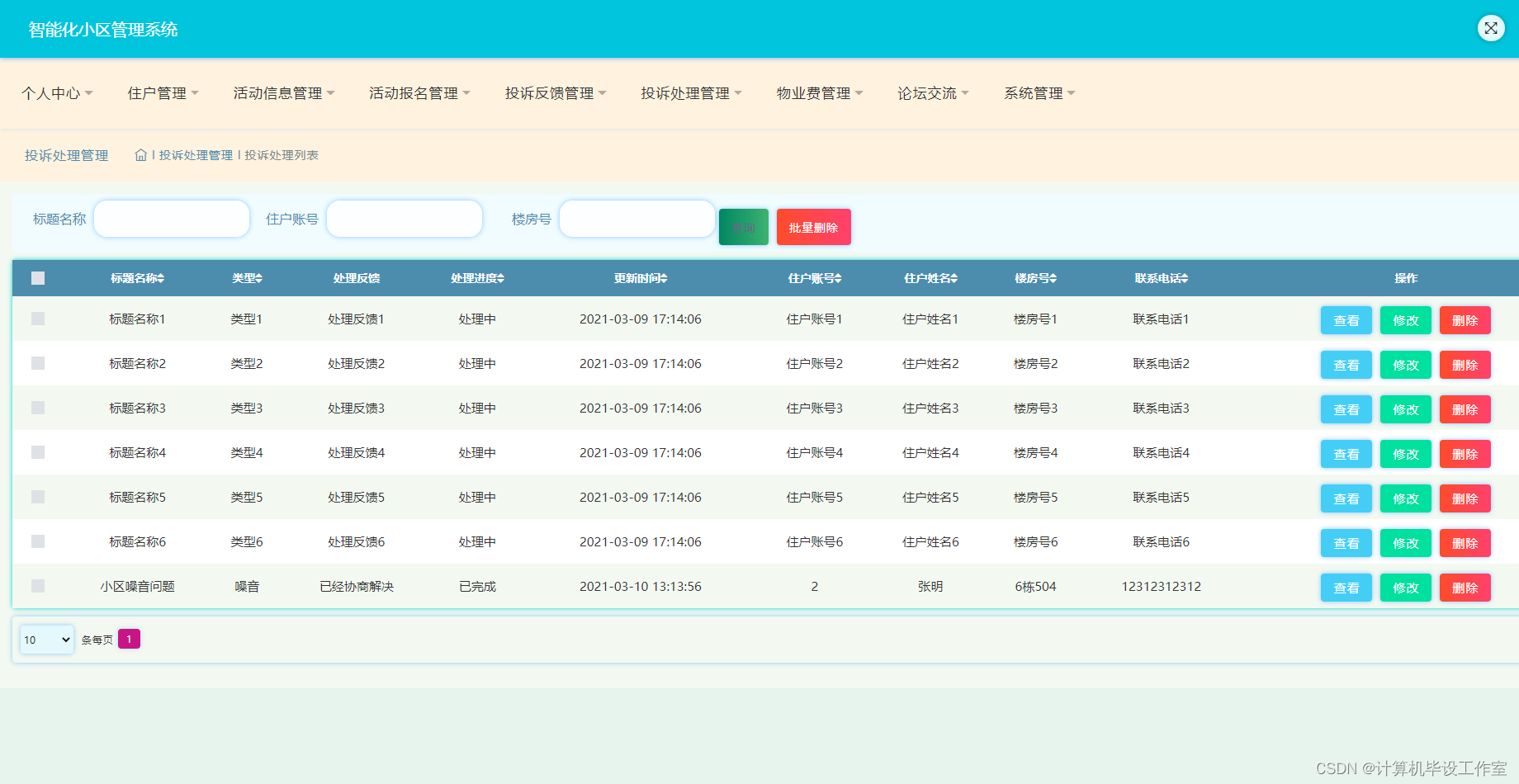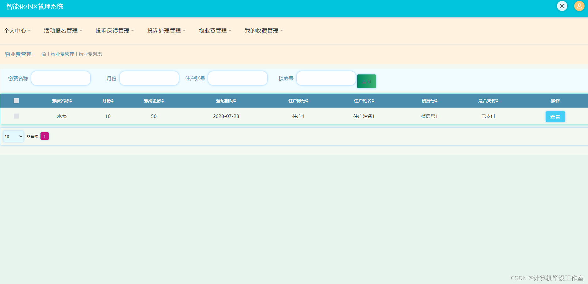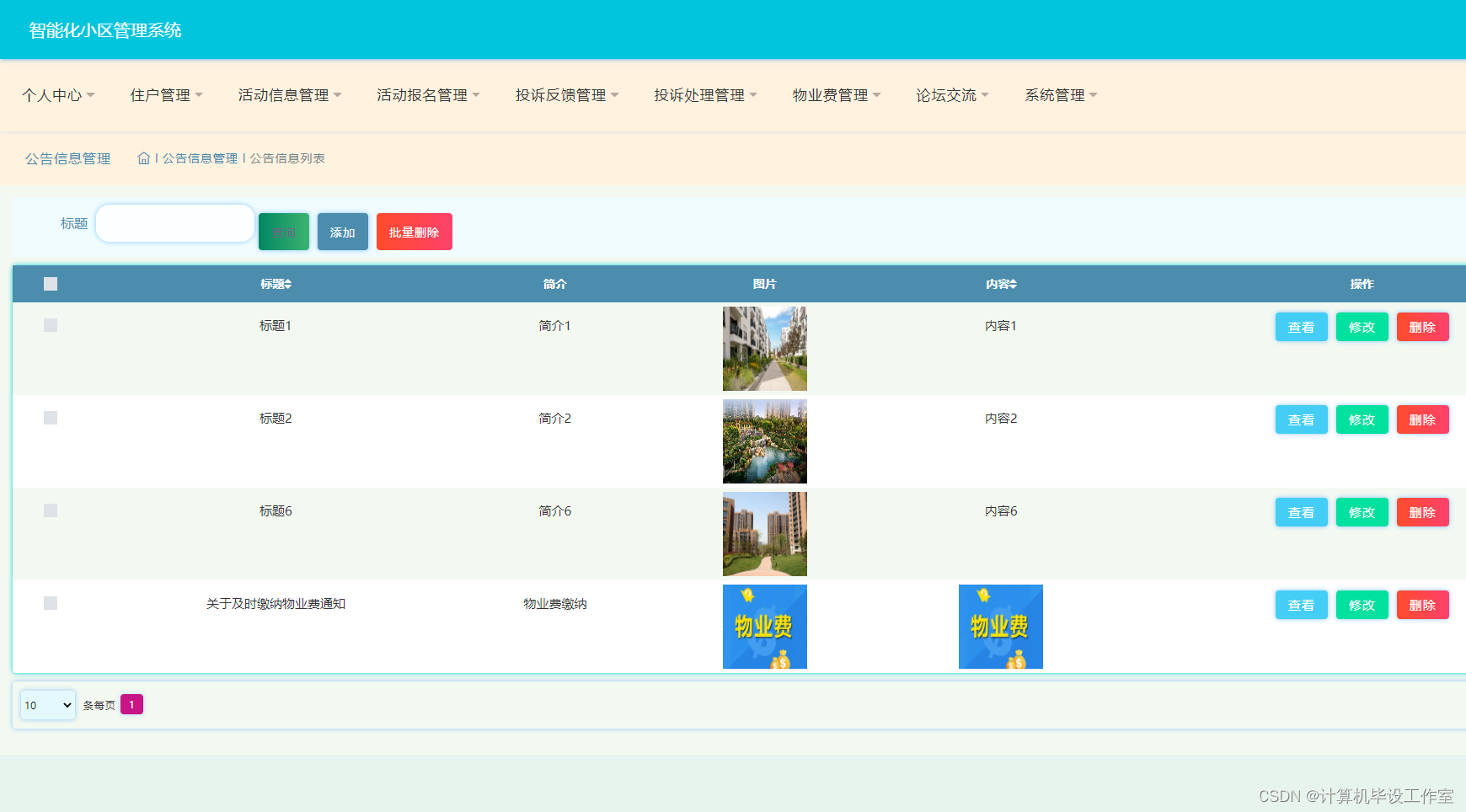 智能化小区物业管理系统(含毕业论文),Java开发ssm框架,可做计算毕业设计或课程设计