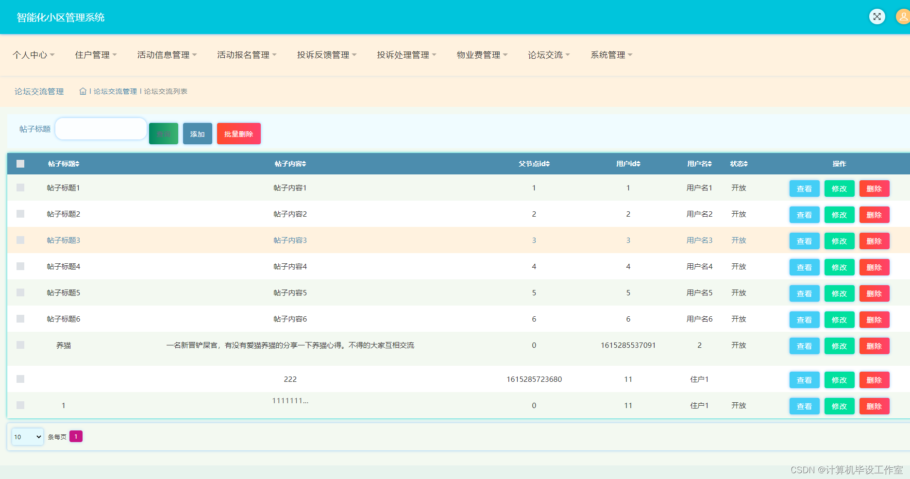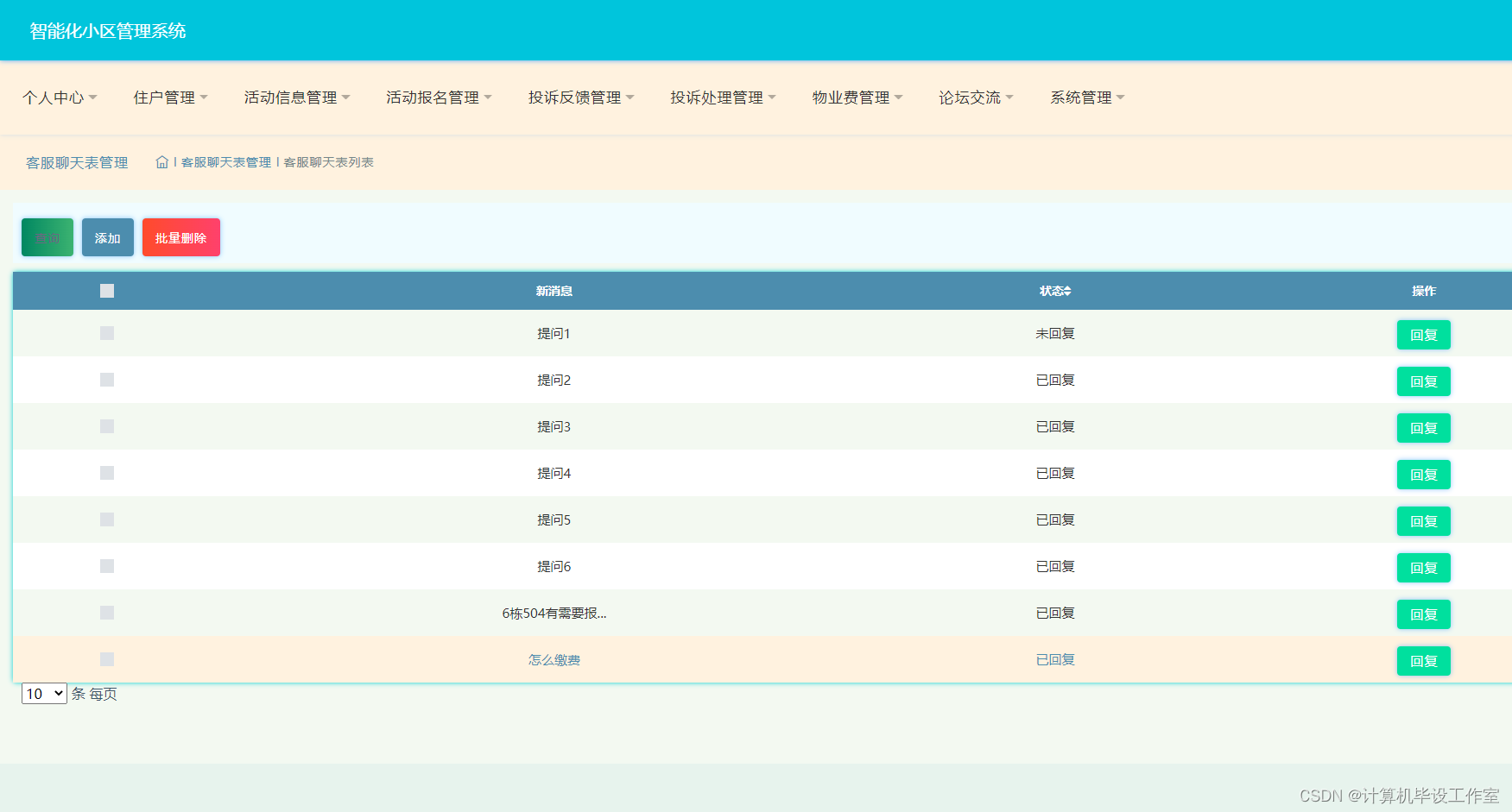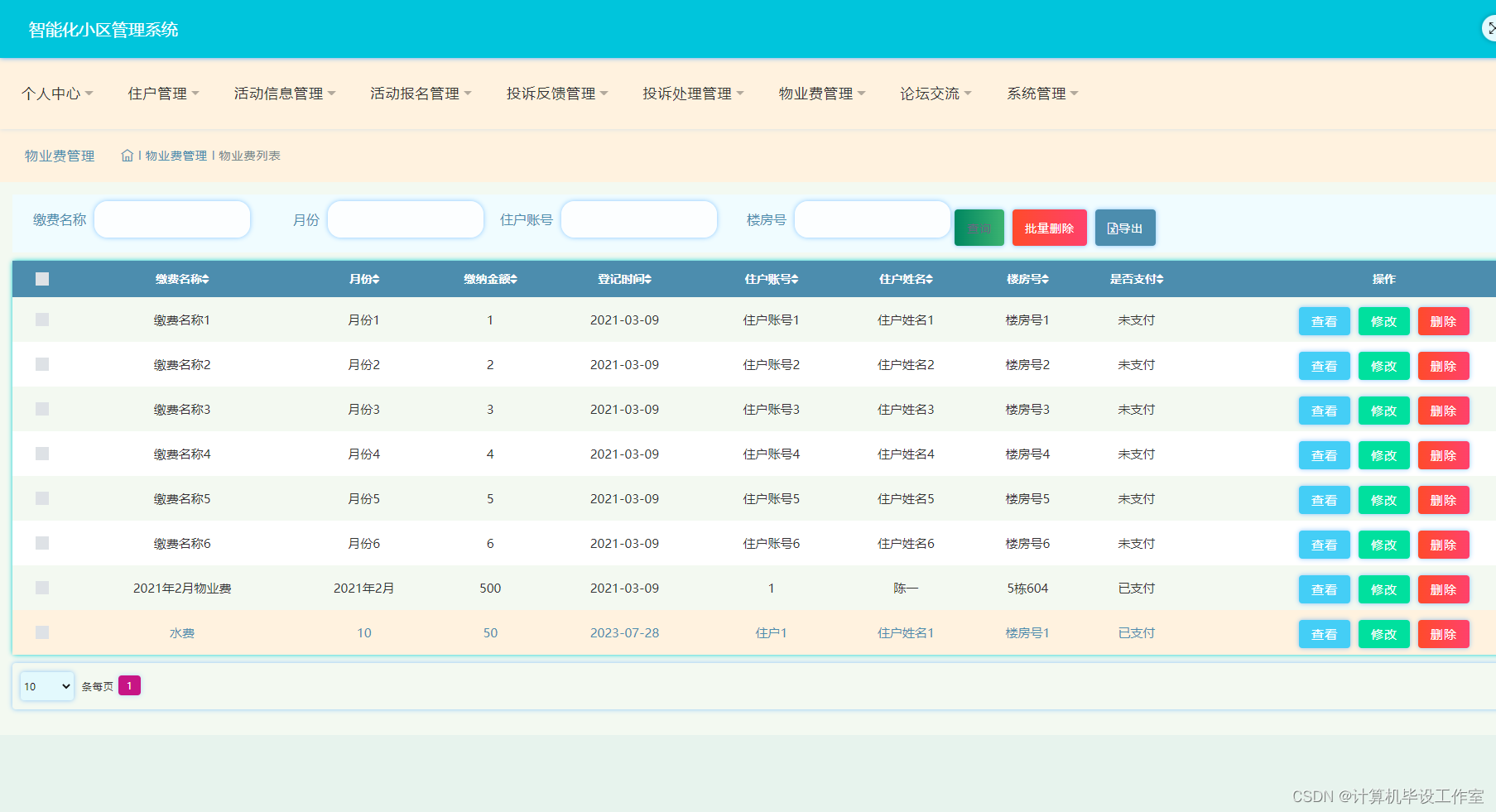 智能化小区物业管理系统(含毕业论文),Java开发ssm框架,可做计算毕业设计或课程设计