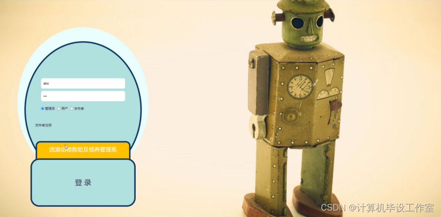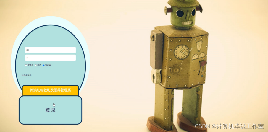 发布者登录;在登录页面中输入用户名、密码、角色等内容进行登录操作;如图4-20所示。