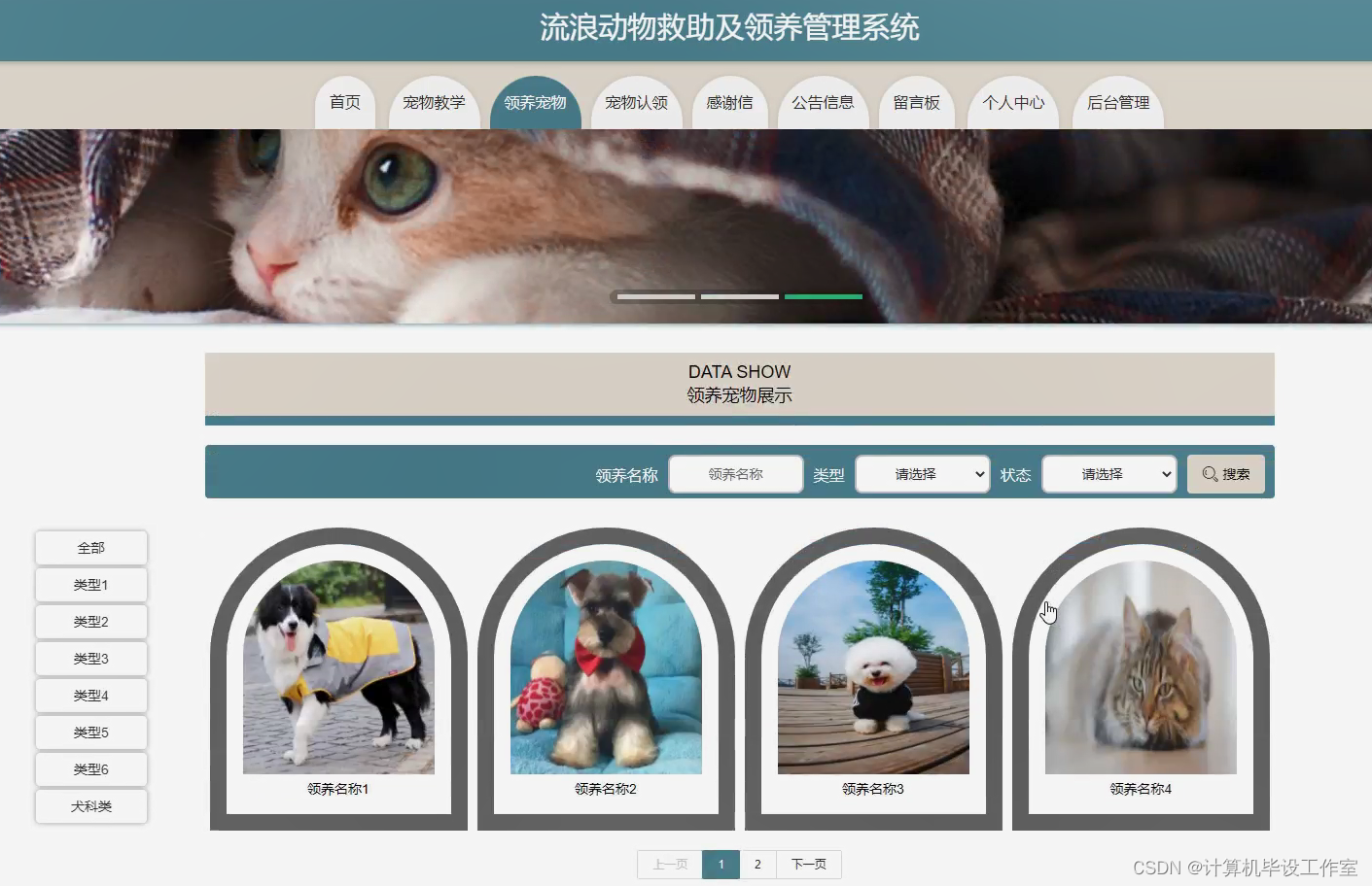 流浪动物救助及领养管理系统(java项目,配套论文,可做毕业设计或课程设计)