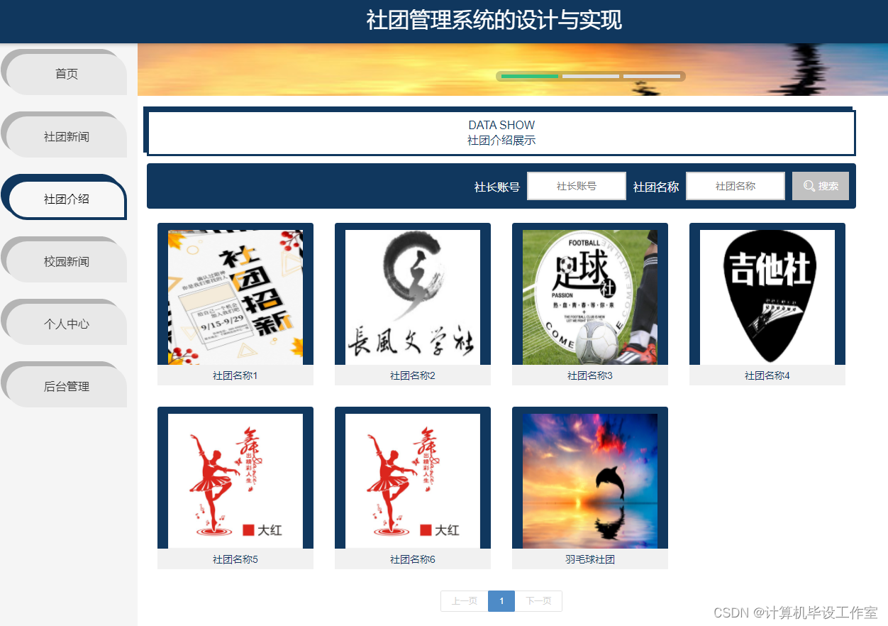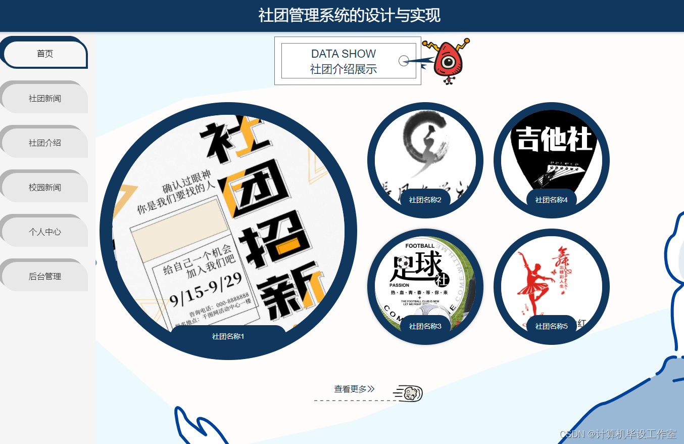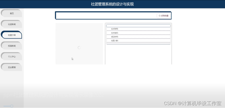 社团介绍模块:可以查看到各大社团介绍信息。