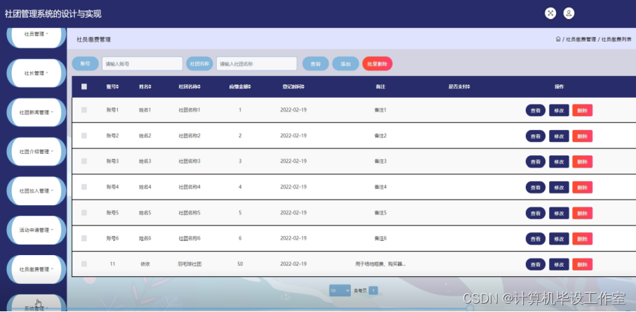 | 功能描述 | 用于社团管理 | |