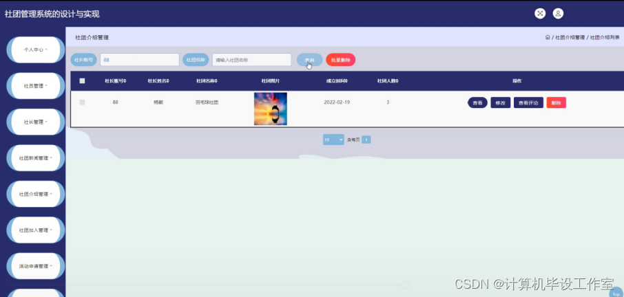 社团管理如下图所示。