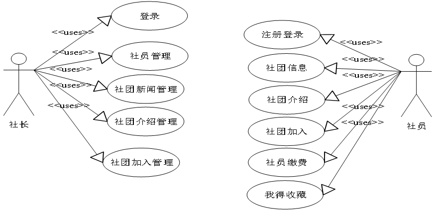 社员可以进行社员注册登录、查看社团新闻信息、社团信息介绍、校园新闻信息浏览、个人信息管理、收藏社团、申请加入社团、社团缴费等功能