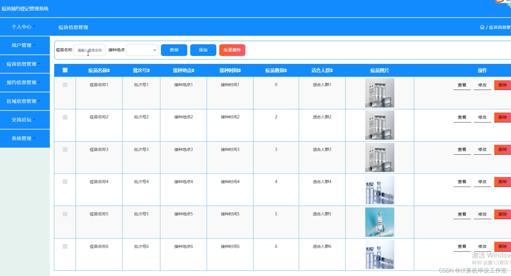 图4-11疫苗信息管理界面图