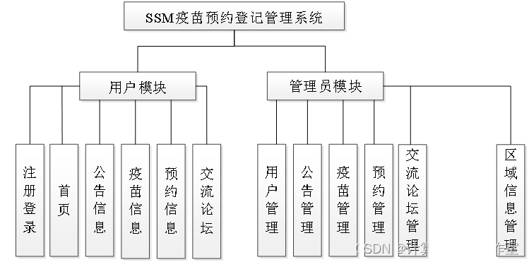 疫苗预约登记管理系统我划分为了用户管理模块和管理员模块这两大部分。