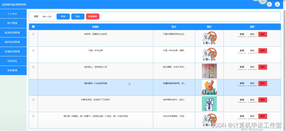 管理员可以对疫苗信息进行增删改查操作并进行发布管理,界面如下图4-11所示。