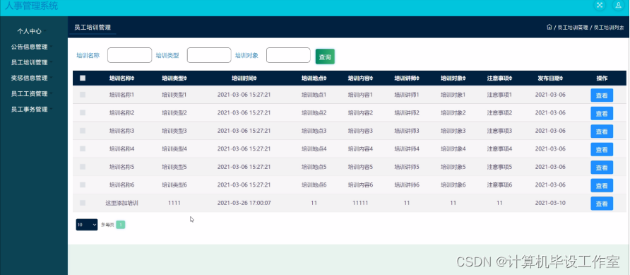 本系统的使用可以实现本人事管理系统管理的信息化,可以方便管理员进行更加方便快捷的管理。