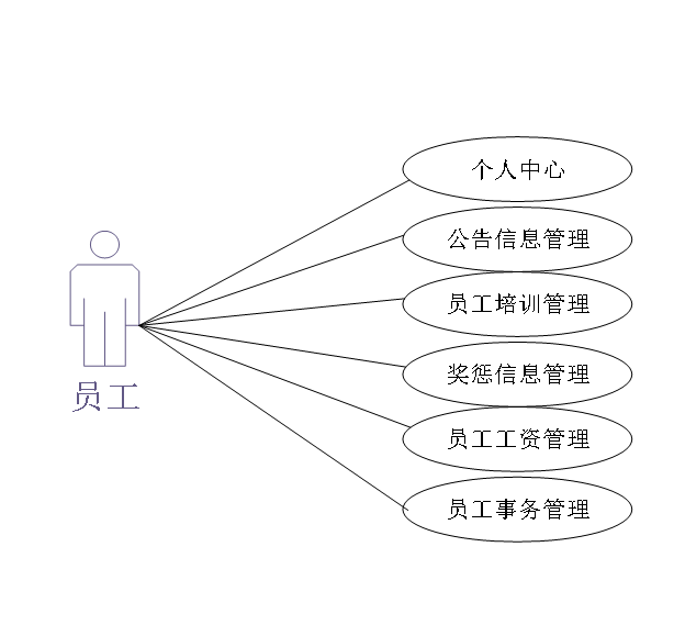 (2)员工:个人中心、公告信息管理、员工培训管理、奖惩信息管理、员工工资管理、员工事务管理等功能,员工如图3-2所示。