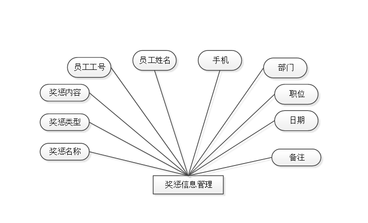 本人事管理系统采用的是MYSQL数据库,数据存储快,因为人事管理系统,主要的就是对信息的管理,信息内容比较多,这就需要好好的设计一个好的数据库,分类要清楚,不能添加信息的时候,造成信息太过混乱,设计好的数据库首先就需要先把各个实体之间的关系表达明确,系统的E-R图如下图所示: