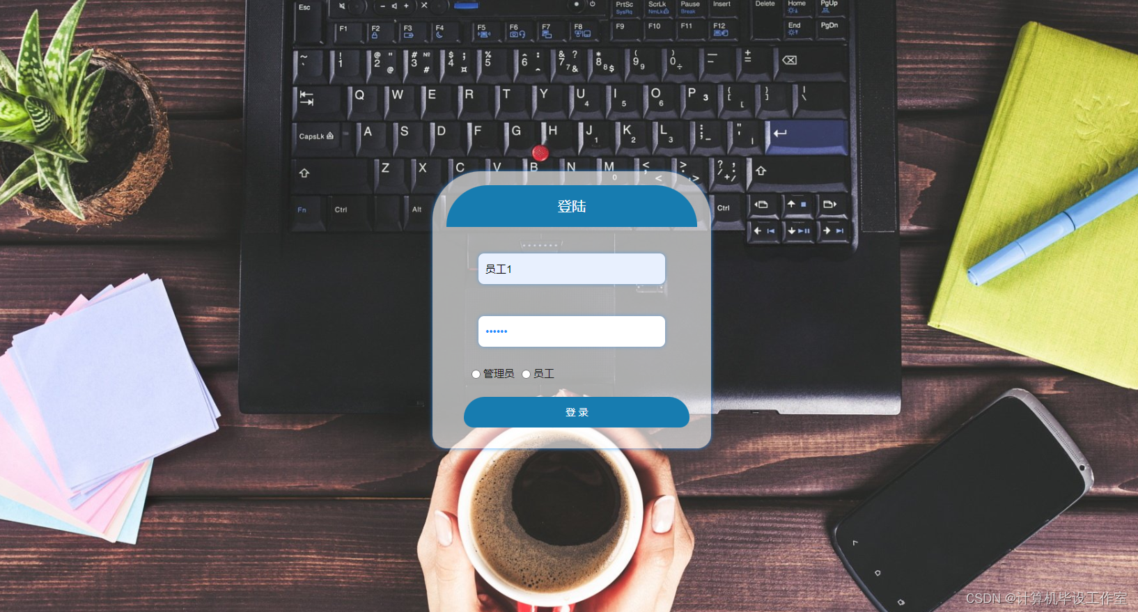 本人自己就是学生,程序开发经验不足,在界面设计上面不会设计太复杂,要讲究简单好看,操作上要方便,不能让员工觉得不流畅。员工一旦进入操作界面,界面上就会有相应提示,跟着操作提示就可以找到对应的功能操作模块,对于员工来说免培训就能使用。
