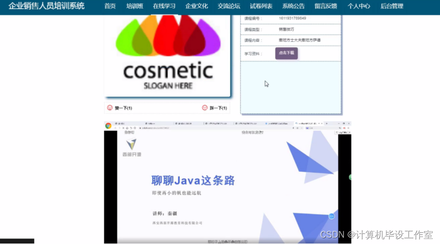 企业人员培训系统(源码+数据库+毕业论文+答辩ppt)java ssm框架vue javaweb javaee,可做计算机毕业设计或课程设计
