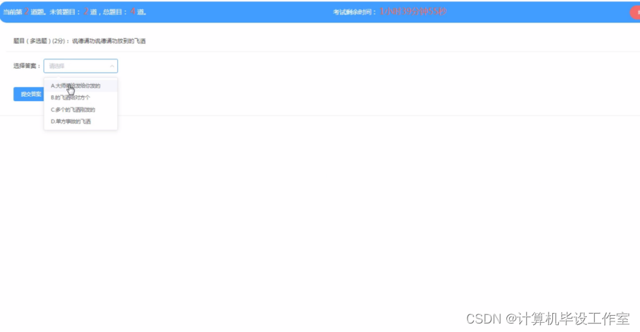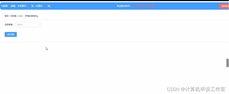 试卷列表:通过前台首页查看试卷列表信息可进行答题等操作。程序效果图如下图5-13所示: