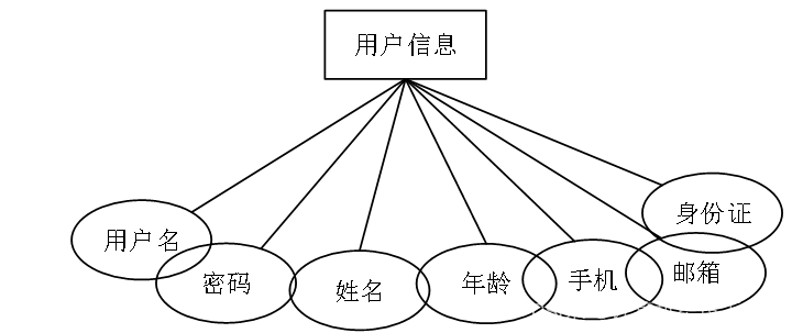 1、用户信息:用户名、密码、姓名、年龄、手机、邮箱、身份证实体图如图4-6所示: