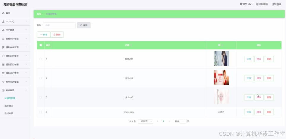 婚纱摄影网站系统(源码+数据库+论文齐全)java ssm+vue javaweb项目,可做计算机毕业设计或课程设计