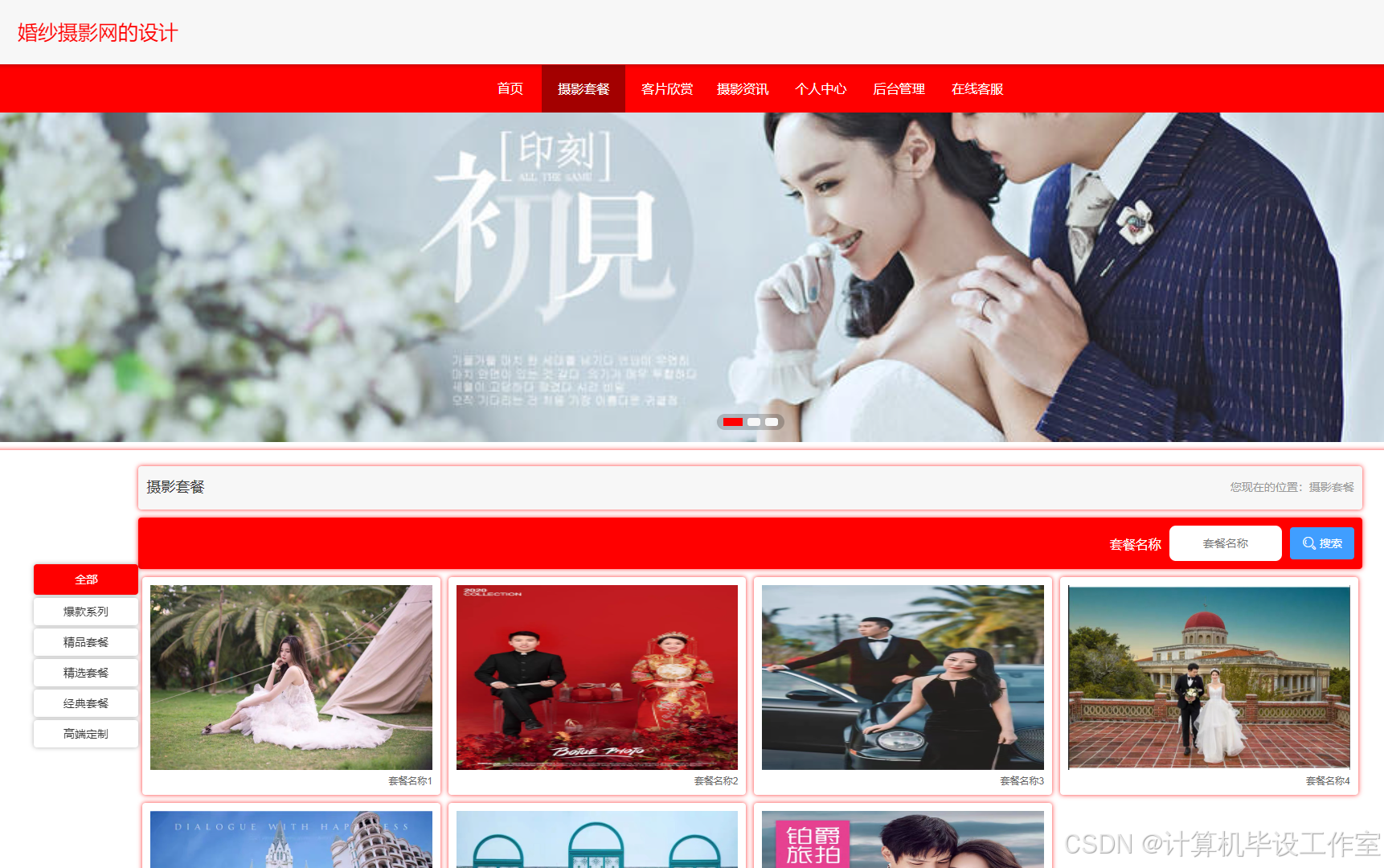 婚纱摄影网站系统(源码+毕业论文+ppt齐全)java开发ssm框架javaweb javae项目,可以做计算机毕业设计或课程设计