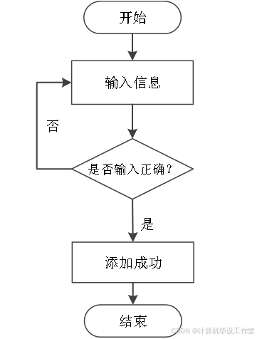 管理员添加信息,内容没有问题之后按下确定键就添加成功了。添加信息流程图如图3-5所示.